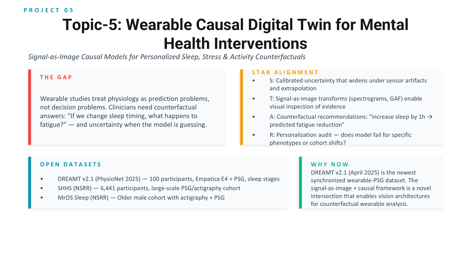 - Topic-05: Wearable Causal Digital Twin for Mental Health Interventions