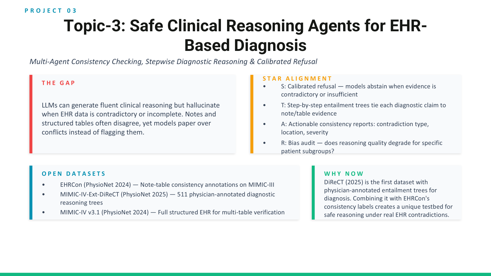 - Topic-03: Safe Clinical Reasoning Agents for EHR-Based Diagnosis